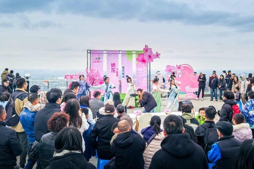 龙泉山上桃花灵通,赏桃花也成为市民搭客假期里的一大热点玩法,尤其是在桃花故里旅游景区,前来赏花喝茶拍照的游宾客山东说念主海,争相在此享受春日的餍足假期。“本年辉煌假期天气还可以,一家东说念主来看桃花,在农家乐里耍一天太巴适了。”家住锦江区的伍女士说说念。此外,青白江凤凰湖旅游景区、新津花舞东说念主间景区等也蛊惑不少附进市民搭客前去体验游玩。文旅演艺点亮破钞新活力