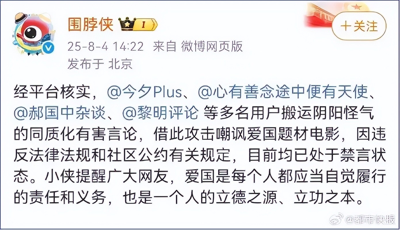 咱们不是用九三考订来扬国威、映衬爱国宽恕吗?境外势力就用抹黑吴京来打散咱们的凝合力和爱国共识。其实这一波抹黑吴京也曾狡计很久、奉行很潜入,运转还真以为是网友玩梗,直到背面赓续升级,看到《南京摄影馆》上映后惩治了一批账号,才明确这即是境外势力掌握。