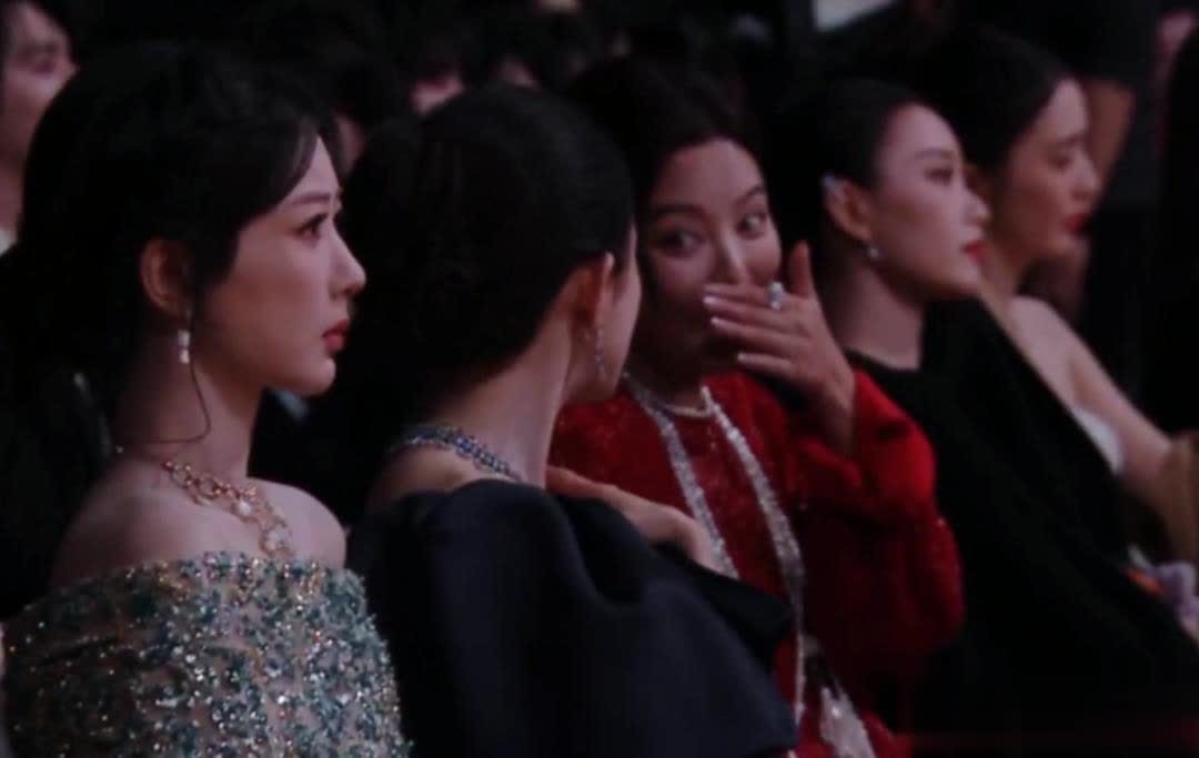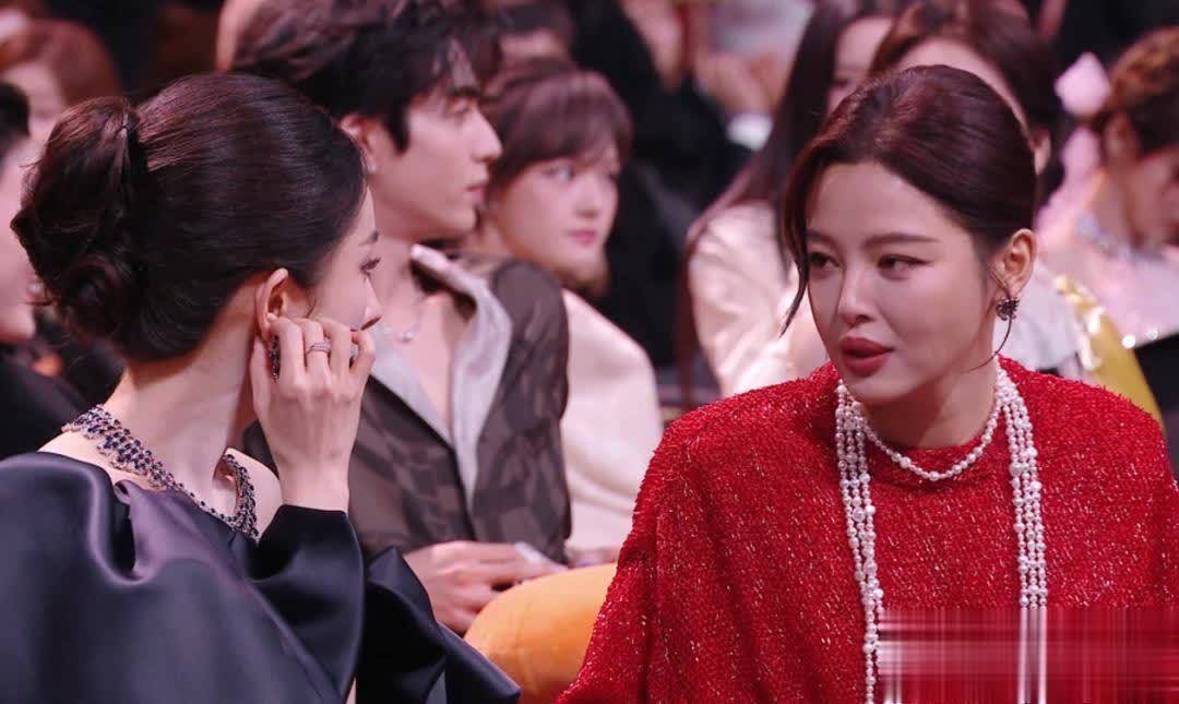 场内杨幂和辛芷蕾坐在通盘热聊,似乎并未因座位插曲受到影响。