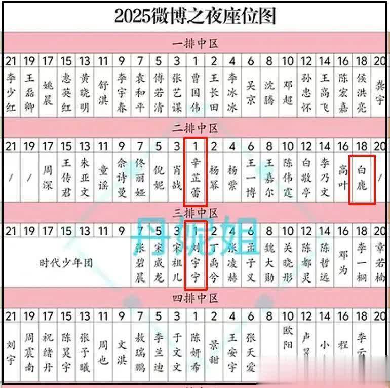 终末放上网友回来的微博之夜座位图,与前年比较,辛芷蕾升咖最为彰着。
