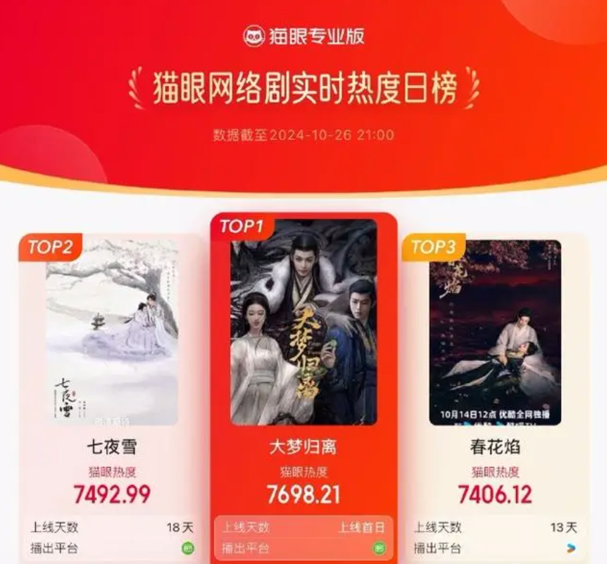 咱们可以看到《大梦归离》刚播出,就登顶猫眼相聚剧热度榜榜首,也即是说,这部剧确切受到了关爱。从当今的情况上看,《大梦归离》礼聘在这个时分空降黑白常正确的,因为同时莫得热度更高的剧播出,是以大部分网友都会被这部剧诱骗,不意《长夜银河》瞬息传出要定档的音讯。