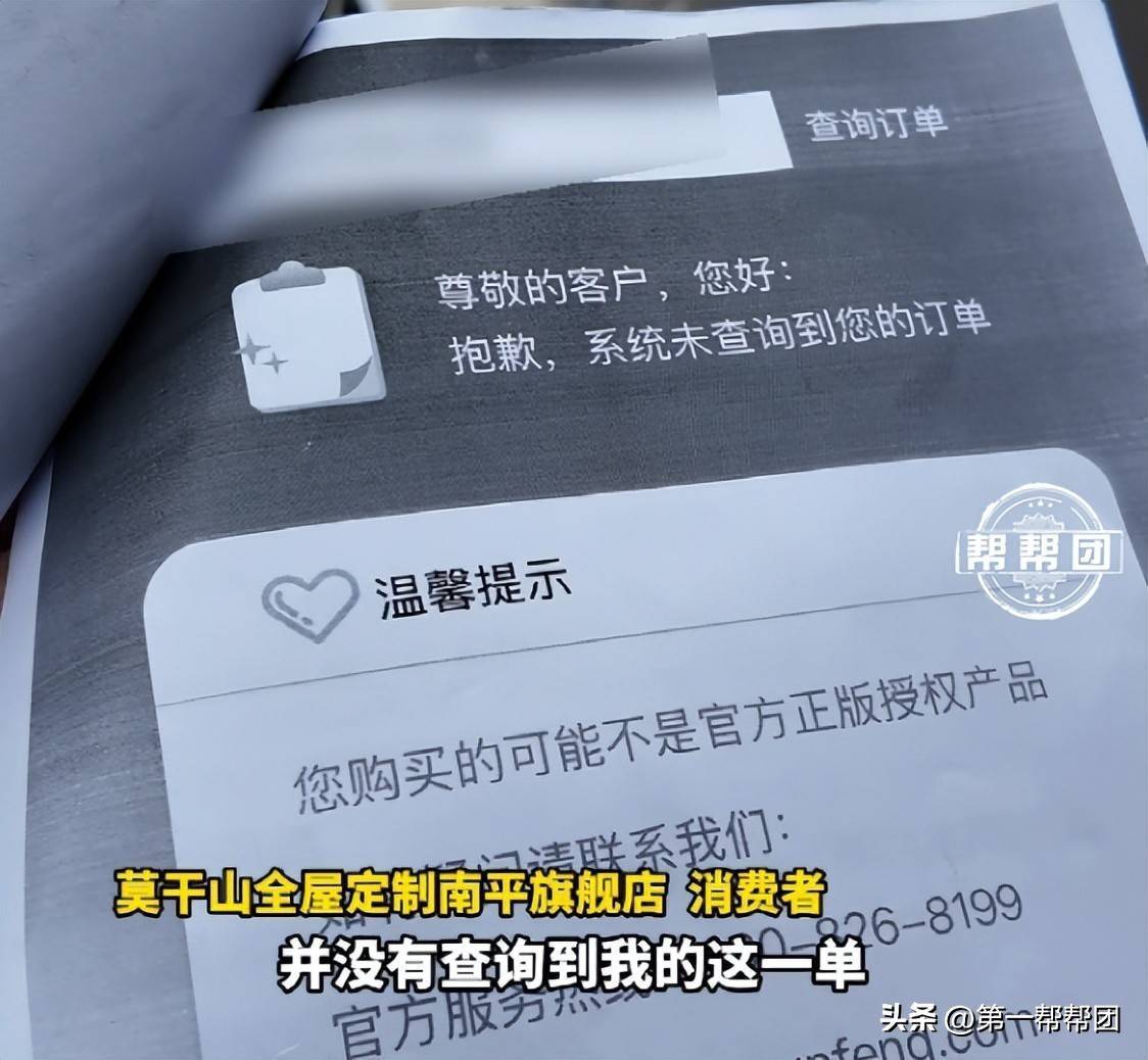 莫干山全屋定制,其官网声称是“百亿企业”,创立于2010年。在品牌光环的迷惑下,福建南平的多位花消者赶赴位于建阳区的莫干山品牌门店下单,但愿能获取释怀的一站式定制就业。
